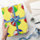 O papel de envolvimento mostrado com uma bola de praia bonito imprime em um fundo amarelo. Personalize este artigo ou compre-o como é.
