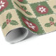 Quatro quadrados no verde e no tan são decorados com os ornamento vermelhos decorados com flocos de neve brancos e azevinho verde com bagas vermelhas. A costura branca adiciona um toque decorativo, dando ao teste padrão de repetição a aparência de uma edredão, criando um sentimento perfeitamente acolhedor para o feriado do Natal.