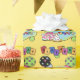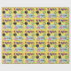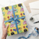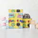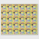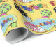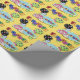 Este papel de envolvimento bonito da festa de aniversário dos balões caracteriza um fundo amarelo, uma festa de aniversário estilizado colorida do texto, um balão preto com bolinhas, um balão verde com bolinhas, um quadro verde com um chapéu azul do partido do fundo e o presente. Aperfeiçoe envolvendo presentes do dia do aniversário. Escolha seus meios e tamanho do papel de envolvimento.