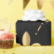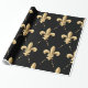 Papel de envolvimento com teste padrão da flor de lis do ouro no fundo preto. Aperfeiçoe para toda a ocasião, moderno, na moda, e elegante.