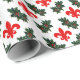 Papel de embrulho lindo com um teste padrão da flor de lis vermelha dentro de uma grinalda do azevinho do Natal. Para todas suas necessidades do papel de embrulho esta época natalícia. Do design de Scarebaby, suportado pela garantia de Zazzle.