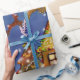 A ilustração gráfica do trenó do papai noel, árvore de Natal, decorou a casa, em uma paisagem nevado do inverno. Envolva acima seu presente neste papel de alta qualidade, lustroso e ilumine-o acima da época natalícia.