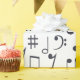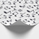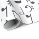 Traga a música a seus olhos e orelhas dos receptores com seu presente belamente envolvido. Uma série de notas da música é coberta todo este papel de envolvimento branco do fundo.