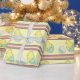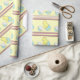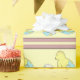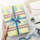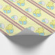 O ovo da páscoa colorido neste papel de embrulho chocou uma surpresa! Um pintinho amarelo distorcido do bebê está emergindo da metade inferior do ovo quando a metade superior se encontrar próximo. O ovo é azul pálido com as listras verticais de alternar amarelo brilhante com as fileiras paralelas de arcos cor-de-rosa pequenos. Este papel de envolvimento igualmente seria muito doce para presentes do bebê e do chá de fraldas. De minha imagem digital criada dos meios mistos do original.