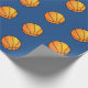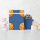 O papel de envolvimento mostrado com um basquetebol dos esportes imprime em um fundo azul. Personalize este artigo ou compre-o como é.