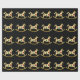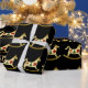 Papel de envolvimento do Natal com os cavalos de balanço bonitos do ouro que são decorados com os elementos do design do feriado que incluem uma árvore de Natal, uma grinalda, e uns sinos do feriado. Papel de embrulho seus prsents no estilo, estilo do feriado.