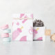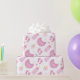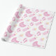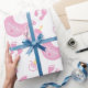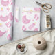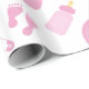 papel de envolvimento do chá de fraldas do bebé. O papel de embrulho perfeito para seus presentes do chá de fraldas, os recém-nascidos e os novos das mães este papel de envolvimento cor-de-rosa caracteriza um babador, uma garrafa de alimentação, um cobertor, umas pegadas e um pino da fralda para um tema bonito do bebé.