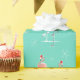 O design à moda com um toque retro que caracteriza os flamingos cor-de-rosa festivos que vestem os chapéus, estrelas vermelhas e as palmeiras do papai noel decorados com baubles ajustou-se contra um fundo do aqua. Um design customizável para que você personalize com seus próprios texto, imagens e ideias. Uma imagem digital original da arte criou por QuirkyChic.