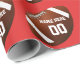 O papel de envolvimento com seu NOME, NÚMERO do futebol e muda o vermelho a SUAS CORES da EQUIPE a sua direita sob o clique do "fundo" uma caixa de cor nova ou clica a ferramenta do conta-gotas para uma seleção mais larga das cores. Personalize UM rolo de cada vez para nomes ou cores múltiplas. Adicione para cart então vão para trás personalizar o papel seguinte do futebol.