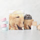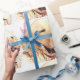 Faça esse presente extremamente especial com este golden retriever bonito que sorri em cima do papel de envolvimento.