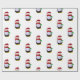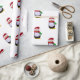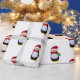 Pinguim com papai noel chapéu e lenço no papel de envolvimento do Natal