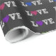 Ame o papel de envolvimento com corações coloridos em um fundo do quadro