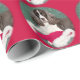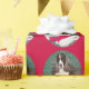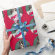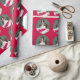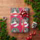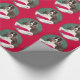 Este é um rolo do papel de envolvimento vermelho do feriado que caracteriza uma fotografia original de um fígado e de um Spaniel de Springer inglês branco que se sentam com um chapéu do papai noel.