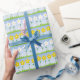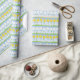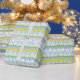 Um papel de envolvimento projetou com um teste padrão com as flores brancas e amarelas.