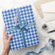 Papel de papel de embrulho do teste padrão da verificação do guingão dos azuis cobaltos. Matte impresso, lustroso de alta qualidade, linho ou de papel de embrulho de Tyvek papel de papel. Teste padrão checkered do guingão clássico. Feito e impresso nos EUA. Ideal para o aniversário, os presentes do aniversário e de casamento ou os presentes de Natal.