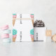 Personalize o papel de envolvimento cor-de-rosa e azul dos cones do sorvete.