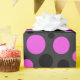 Papel de envolvimento decorado com os pontos cor-de-rosa e pretos.
