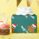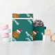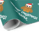 Papel de envolvimento feito sob encomenda da coruja do papai noel do Natal para miúdos. Texto de Personalizable para cartões de natal das estações. Impressão animal engraçado que veste um chapéu de Papai Noel. Cores verdes e vermelhas do xmas com tipografia engraçada para crianças.