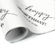 Papel de envolvimento feito sob encomenda da tipografia do feliz aniversario. Giftwrap preto e branco da escrita elegante para homens, mulheres e miúdos. Design escrito à mão bonito com rotulação à moda do roteiro da escova. Adicione seu próprio nome ao texto do modelo. Personalize para ele ou ela. Acessórios diy na moda do partido para celebrações.