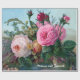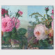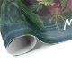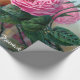 Rosas bonitos feitos sob encomenda do papel de envolvimento dos rosas do Victorian do vintage todas as máscaras do rosa, da laranja e do vermelho no fundo azul com as folhas verdes com olhar antigo você pode personalizá-lo com seu próprio nome