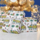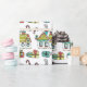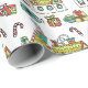 As casa de férias e os presentes desenhados mão felizes decoram este papel de envolvimento lunático.