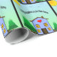 Os parabéns em seu papel de envolvimento Home novo caracterizam uma casa, um sol e umas árvores. Aperfeiçoe para o presente do Housewarming. ©2013 a casa de envolvimento pela xerez Harris
