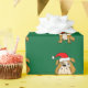 Cão de filhote de cachorro inglês marrom e branco engraçado e bonito maravilhoso do buldogue que veste um papel de envolvimento do Natal do chapéu de Papai Noel. Pode igualmente adicionar o texto feito sob encomenda e mudar a cor do fundo ao pedir. Aperfeiçoe para presentes personalizados durante os feriados.