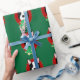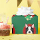 Adorável e divertimento Boston Terrier com um papel de embrulho do biscoito do Natal