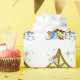 Papel de embrulho com bebê Jesus no comedoiro com animais e anjo dos reis