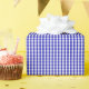 Um papel de envolvimento projetou com um teste padrão do guingão dos azuis marinhos e do branco no tamanho pequeno.