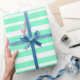Este papel de envolvimento moderno caracteriza um teste padrão listrado do verde bonito da hortelã.