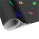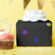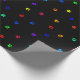 Um arco-íris dos pawprints cobre o fundo preto deste papel de envolvimento.