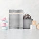 Um papel de envolvimento projetou com um teste padrão preto e branco do guingão no tamanho pequeno.