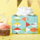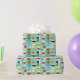 Este papel de envolvimento retro do teste padrão do Harlequin é estilo moderno do meio século no seu mais fino. O vintage inspirou características que de design um fundo do aqua com fileiras das formas triangulares que formam um harlequin modela. As formas dois-tonificadas do diamante são amarelas, brancas, vermelhas, alaranjadas, pretas, verdes, e branco com acentos pretos. Mas a espera, lá é mais! Há igualmente uns ovals alaranjados, uns ovals verdes com starbursts pretos, e uns esboços dos carvões. O tempo marcha sobre, mas você sentirá como você encontrou uma explosão kitschy do passado com este tesouro geométrico colorido.