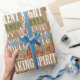 Este papel de envolvimento moderno rústico do feriado caracteriza um fundo do serapilheira-olhar com a vária redacção que descreve a época natalícia do Natal.