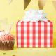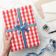 Um papel de envolvimento projetou com um teste padrão vermelho e branco do guingão no tamanho médio.
