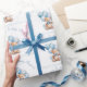 Papel de ondulação de Chá de fraldas personalizado e bonito em blues e beges macios, com o mais bonito urso bebê e balões de festa. Personalize facilmente o texto.