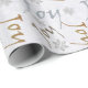 Papel de embrulho de Natal elegante, com texto gráfico brilhante lendo Joy em prata, ouro e bronze, contra fundo branco. Flocos de neve brancos bonito acrescentam um sotaque festivo a este belo papel de feriado.