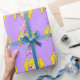 Este papel de embrulho bonito com um padrão em um gráfico de sereia bonitinho vestido de roxo com fundo roxo seria perfeito para festas temáticas de praia e festas de aniversário femininas.