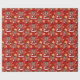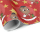 Papel de embrulho de Natal com ilustração de uma menina ou rapaz preto feliz sorridente e sorridente, o bebê está vestindo roupas vermelhas e brancas e segurando um presente; com um modelo de texto editável para seu nome ou mensagem, design de Natal com um fundo vermelho sem soldadura com estrelas