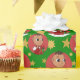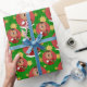 Papel de embrulho de Natal com ilustração de uma menina ou rapaz feliz sorridente, o bebê está vestindo roupas vermelhas e brancas e segurando um presente; com um modelo de texto editável para seu nome ou mensagem, design de feriados de Natal com um plano de fundo verde perfeito com estrelas
