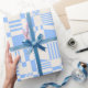 Este design de papel de embrulho divertido apresenta um padrão moderno em azul claro e branco. Todas as cores podem ser personalizadas usando a "ferramenta design". É uma escolha excelente de embrulhar papel para muitas ocasiões!