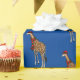 Um desenho de uma girafa vestindo um chapéu e um cachecol.