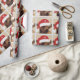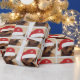Chihuahua bonitinho com o chapéu de Papai Noel embrulhando papel.