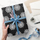 Este papel de embrulho preto e branco é acentuado com um floco de neve branco brilhante, que coordena perfeitamente com todos os itens da Elegante Coleção de Feriados de Neve.