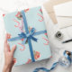 Este belo e moderno papel de embrulho de natal/feriado mostra sua foto, uma palavra "alegria" com uma cana doce, uma coroa verde com fita, e um panda vermelho com nariz vermelho e cabeça de rena sobre fundo azul claro. Altere a cor de fundo e personalize-a para as suas necessidades. Você pode encontrar produtos correspondentes na minha loja.