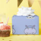 Um papel de moldagem azul com um hipopótamo fofo no estilo cartoon. Uma boa ideia para um pacote de presentes para uma criança ou um amante de Kawaii Characters!