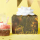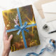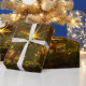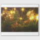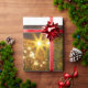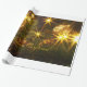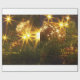 "Feliz Natal" - papel de embrulho de férias glamouroso com bolhas de Natal ouros, luzes cintilantes, cones de pinho e galhos de árvores de Natal.
