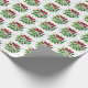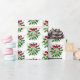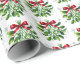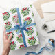 O papel de embrulho de presente de Natal é mostrado em um impressão festivo de emblema de Natal e flocos de neve. Personalize este papel ou comprar como está. Imagem licenciada