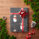 Um bonitinho bonitinho de neve de inverno com flocos de neve em um fundo preto decora este papel de embrulho de Natal. Um padrão simples e divertido para seus presentes de Natal. Projetado para você pelo Blackberry Boulevard.